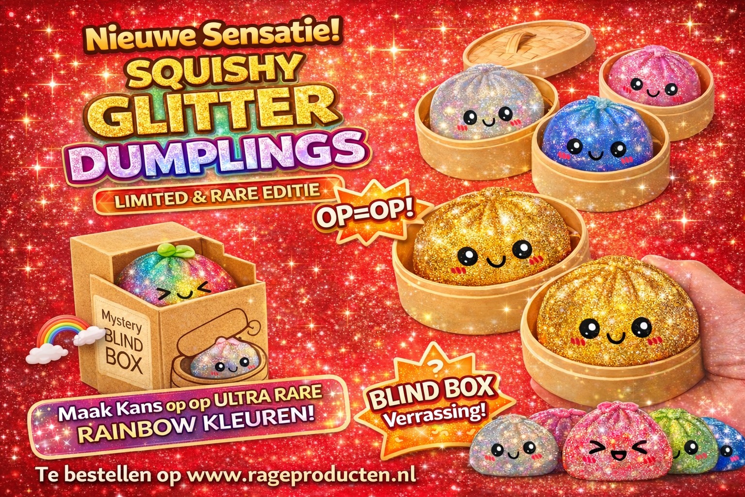 De Squishy Surprise Dumplings zijn weer leverbaar!! LET OP!! DOOR DE HUIDIGE SITUATIE IN HET MIDDEN-OOSTEN ZIJN DE KOSTEN VOOR HET INVLIEGEN VAN GOEDEREN HELAAS GESTEGEN.Dé mega rage van 2026 is...